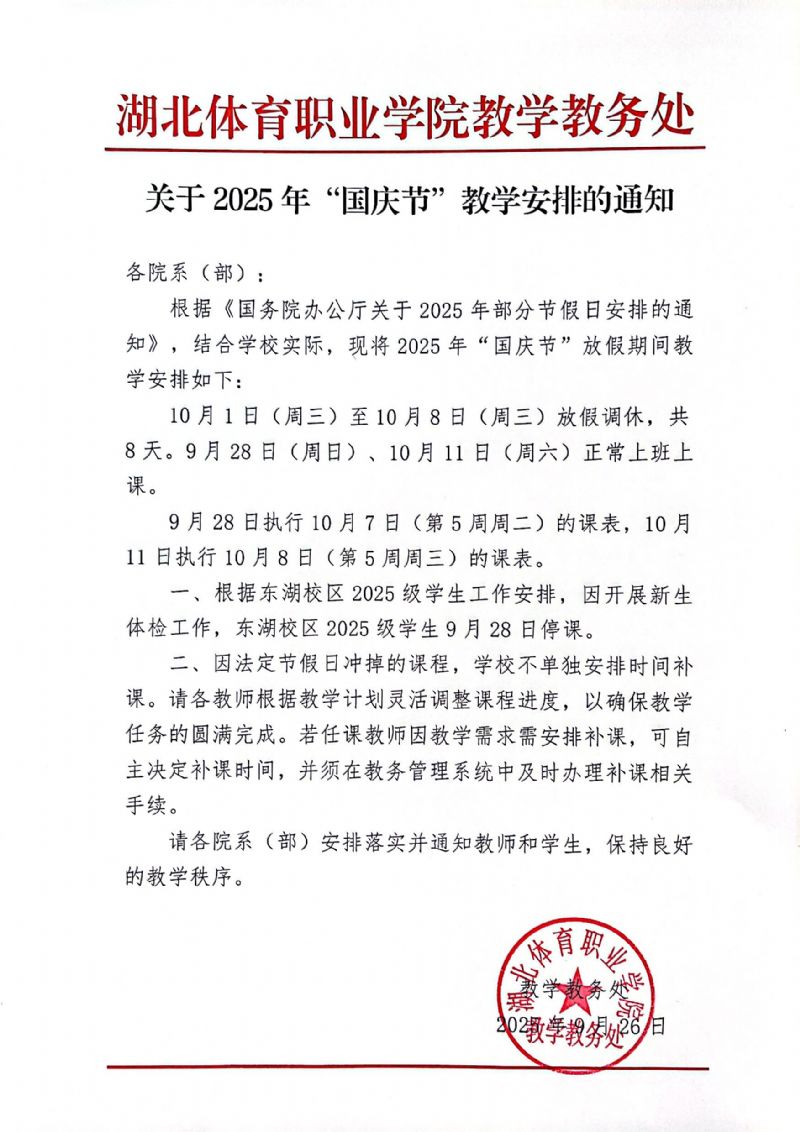 关于 2025年“国庆节”教学安排的通知
