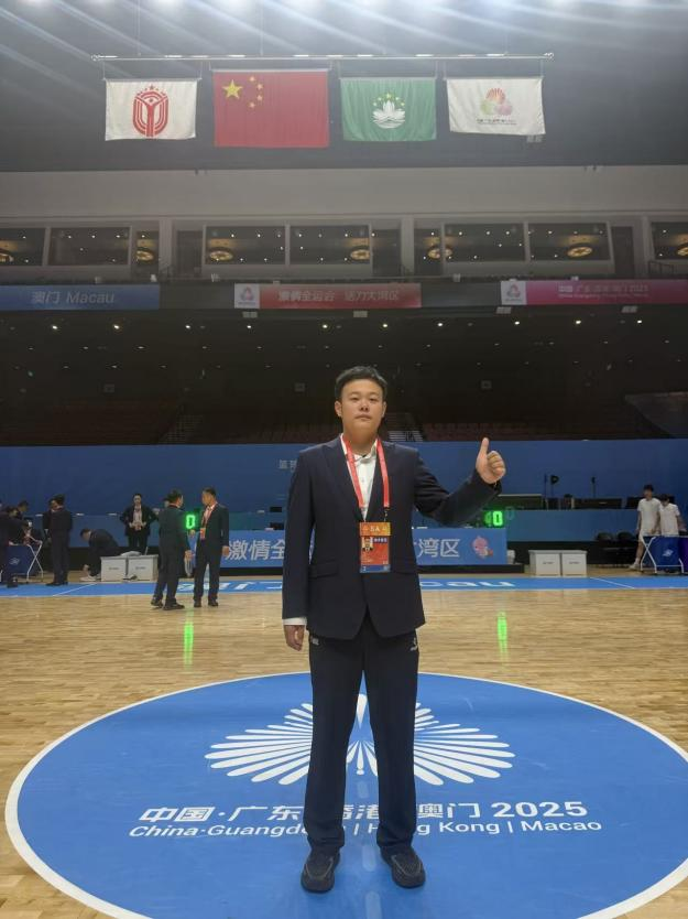 本网讯(通讯员 钱瑞)第十五届全国运动会首次实现粤港澳三地融合办赛,成为彰显中国体育实力与协同精神的国家级顶级赛事平台。在澳门赛区男子篮球U18竞技组赛事中,湖北体育职业学院运动训练系专任教师、篮球国家级裁判高翔,凭借扎实的专业素养与精湛的执裁能力圆满完成任务,在全国青少年篮球顶尖对决中坚守公平底线,以精准判罚展现我校教师队伍的过硬专业风采。