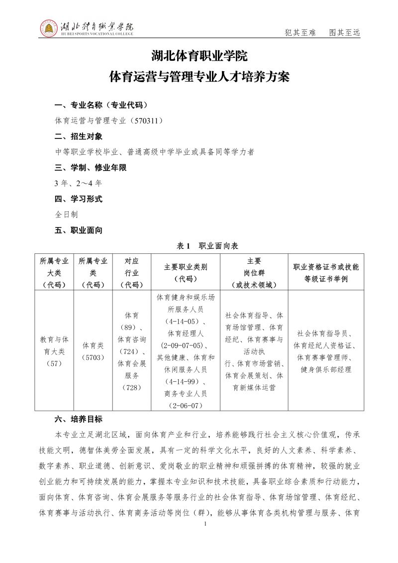 2025级人才培养方案 体育运营与管理专业(专业代码:570311)