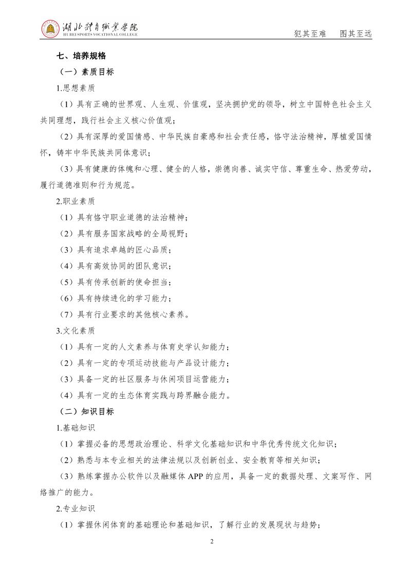 2025级人才培养方案 休闲体育专业(专业代码:570302)