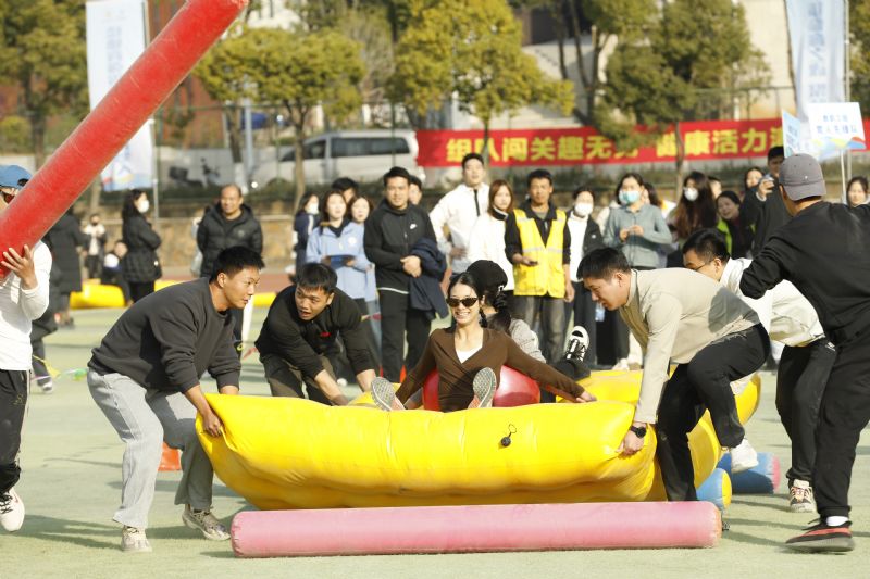 12月16日,2025年“体育嘉年华”活动在田径场正式开幕。活动创新性融合竞技与趣味两大板块,设置滚滚向前、真人打地鼠等6项竞技项目及旱地冰壶、高尔夫推球等4项趣味项目。竞技场上,各代表队默契配合、奋勇争先;接力赛中队员们极速冲刺、交接有序;拔河比赛的对决悬念迭起,绳索两端的队员们咬牙发力、众志成城;心心相印、八仙过海等项目则考验着团队的协作与默契。趣味区里,师生们自由打卡参与,沙包掷准的精准投掷、九宫足球的巧妙射门,让赛场充满欢声笑语,完成全部项目即可参与抽奖,充分展现了“快乐运动”的活动理念。