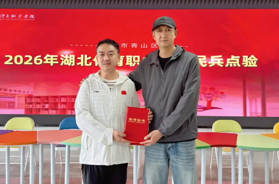 本网讯(通讯员 王雅微 谢沙)民兵,平时为民,战时为兵。为进一步夯实民兵队伍建设根基,强化使命担当,锤炼过硬作风。2026年4月14日,我校一站式征兵工作站召开民兵点验大会。20位民兵同志精神抖擞,以昂扬姿态接受点验。校武装部部长李洋、校民兵负责人谢沙、青山区武装部相关负责人及全体民兵参会。会议由学工处段佳贝主持。