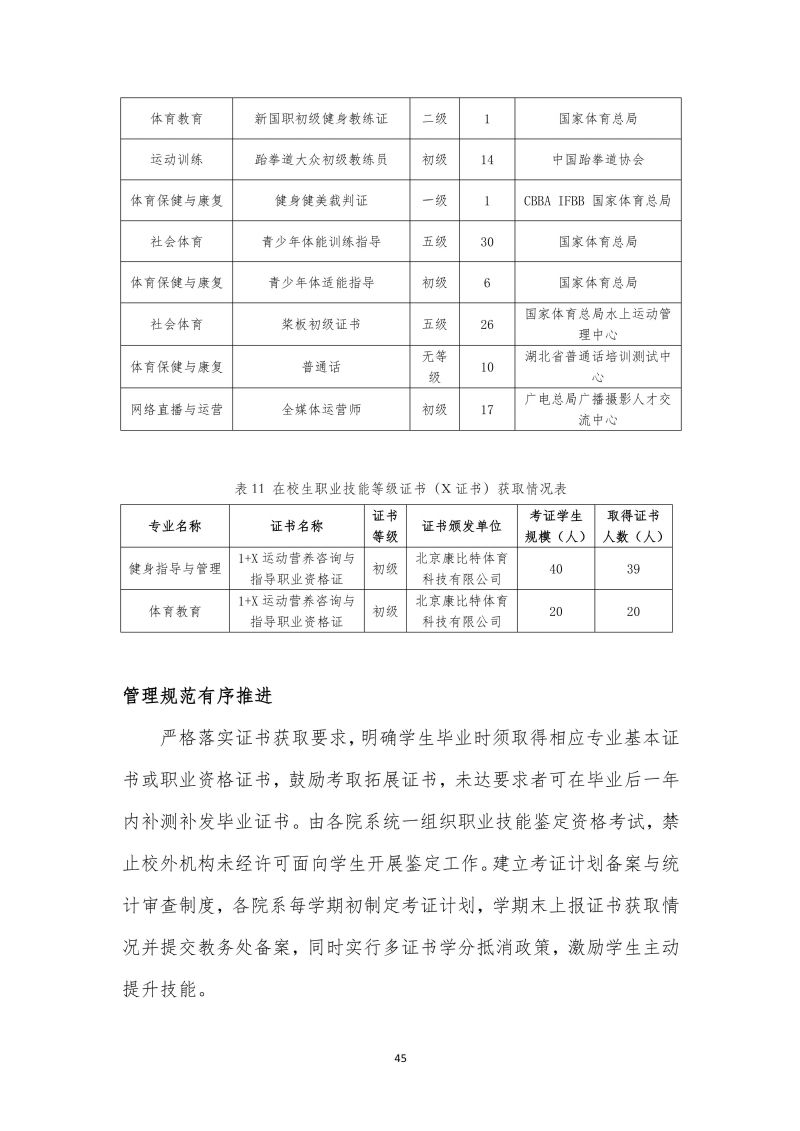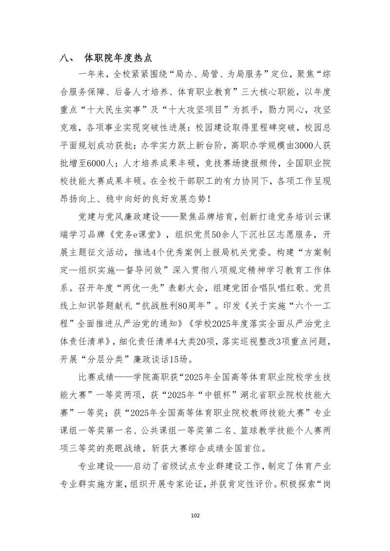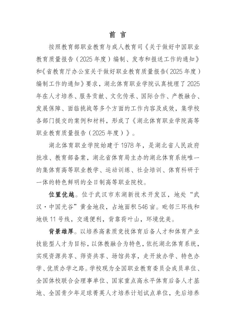 湖北体育职业学院职业教育质量报告(2025年)
