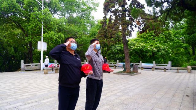 吴赫鹏、艾星诚在施洋烈士纪念碑前敬礼