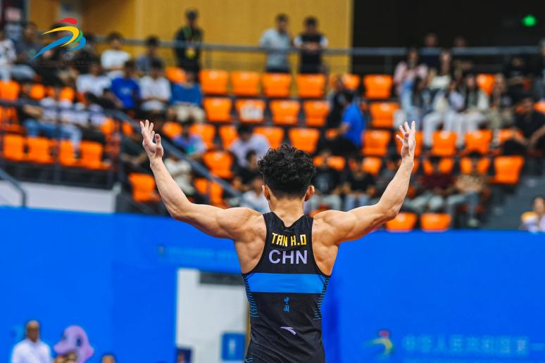 在古典式男子60公斤级比赛中,武汉队谭浩东一路过关斩将,闯入决赛。决赛中,他与郑州队海那尔·吾门江展开激战,实力稍胜一筹的谭浩东把握两次跪撑机会,连续完成抱摔,最终以大比分胜出。