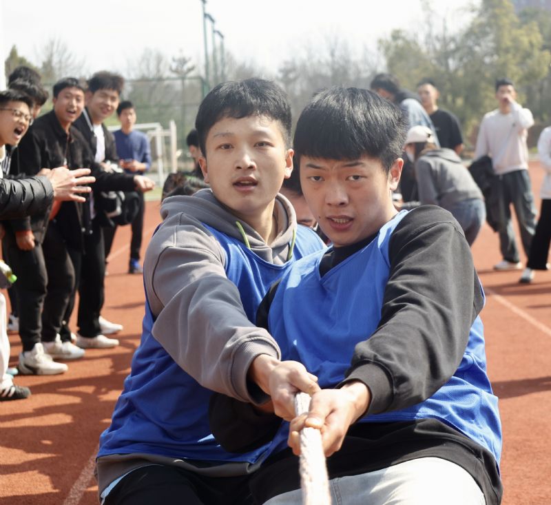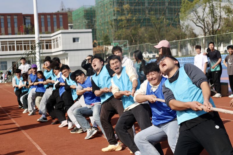 3月26日,我校在主校区田径场举行了以“凝‘绳’聚力,力拔青春”为主题的拔河比赛。