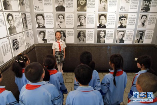 在井冈山革命烈士陵园,“小红军宣讲团”的成员周煜菡给前来参观研学的学生们进行义务讲解(5月12日摄)。新华社记者彭昭之摄