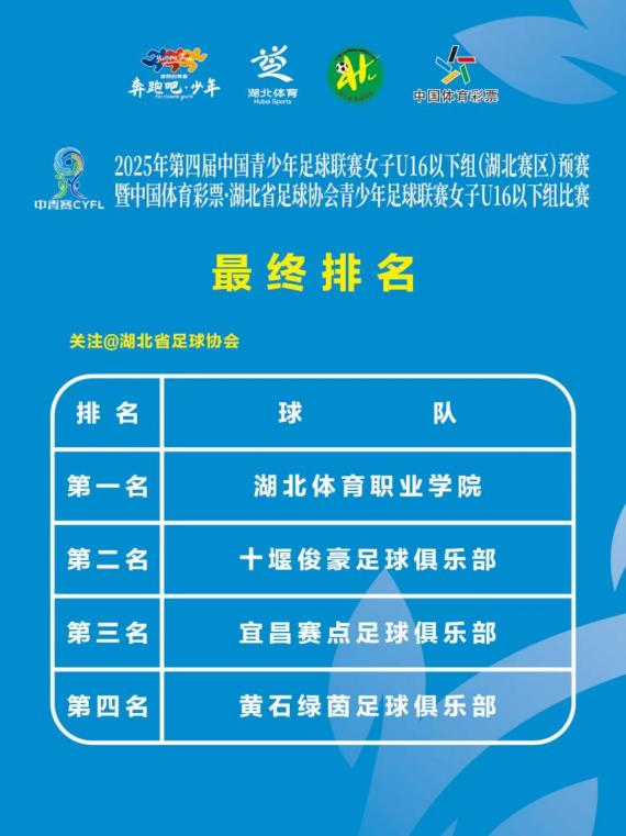 本网讯(通讯员 紫君 图 郭晓飞 湖北足球公众号)10月8日,2025年第四届中国青少年足球联赛(湖北赛区)预赛暨湖北省青少年足球联赛在黄石市奥体中心落幕,湖北体育职业学院U16女足梯队以全胜战绩、进28球不失一球的表现强势夺冠,用完美战绩为荆楚足球青训再添亮眼注脚。