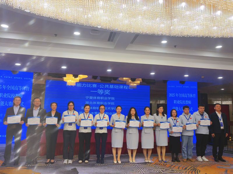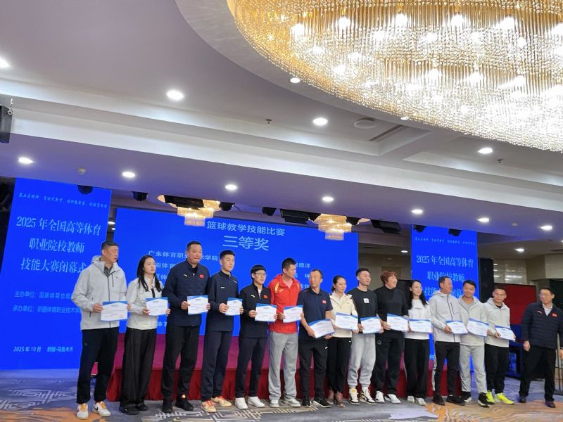 本网讯(通讯员 王伶俐)捷报传荆楚,荣光耀职教!10月17日,2025年全国高等体育职业院校教师技能大赛在新疆乌鲁木齐圆满落幕,湖北体育职业学院教师团队技压群芳,以专业课组一等奖第一名、公共课组一等奖第二名、篮球教学技能个人赛两项三等奖的亮眼战绩,斩获大赛综合成绩全国首位,首次实现学校在该项全国顶级体育职教赛事中的“登顶”突破,为湖北体育职业教育写下里程碑式的一笔。