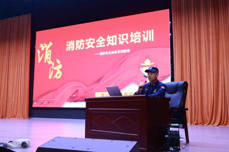 在讲座上,关山消防救援站李政教官围绕火灾防治关键知识,从火灾基本知识、灭火核心方法、灭火器械实操技巧及火场科学逃生术等模块,展开了一场系统且接地气的消防科普培训。李政教官着重拆解了燃烧的“三要素”,即一定温度、助燃物(氧气或氧化剂)与可燃物质,通过通俗的原理讲解,让同学们从根源上认清火灾发生的逻辑,为后续深入学习防火、灭火技能筑牢理论基础。