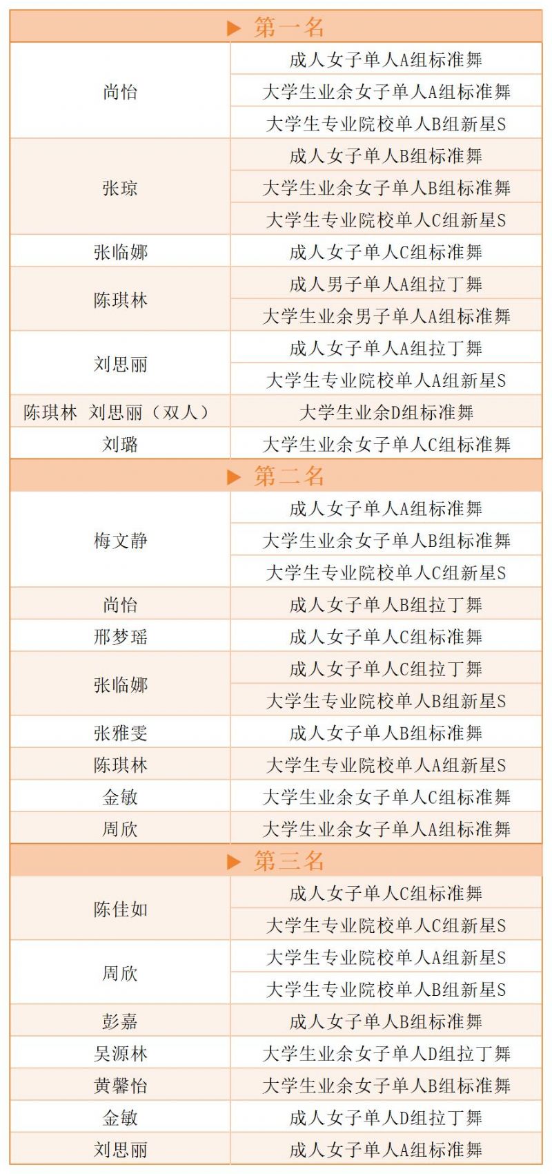 系主任钱瑞全程跟进备赛与参赛环节,从训练计划优化到赛事细节对接,事无巨细统筹协调,为学子夺冠搭建坚实后盾;张秋霞、谢思影两位教师分工带队,备赛三月放弃休息,深夜调整训练方案,用专业筑牢夺冠根基。16名学子以“把课余时间全交给训练场!”为共同誓言,清晨在舞蹈房反复练习基础架型与基本步,汗水浸透舞服仍坚持不懈;午后体能训练中,平板支撑时手臂颤抖、折返跑后呼吸急促,却依旧咬牙投入下一轮练习;夜晚为打磨动作衔接流畅度,围着镜子反复抠细节,即便错过饭点、延迟熄灯也坚持完成当日目标,训练中大家彼此鼓劲、互帮互助,以“一个都不能少”的默契凝聚合力,最终在赛场上凭借统一挺拔的架型、精准连贯的动作和饱满的精神状态打动裁判,将集体拼搏精神展现得淋漓尽致。