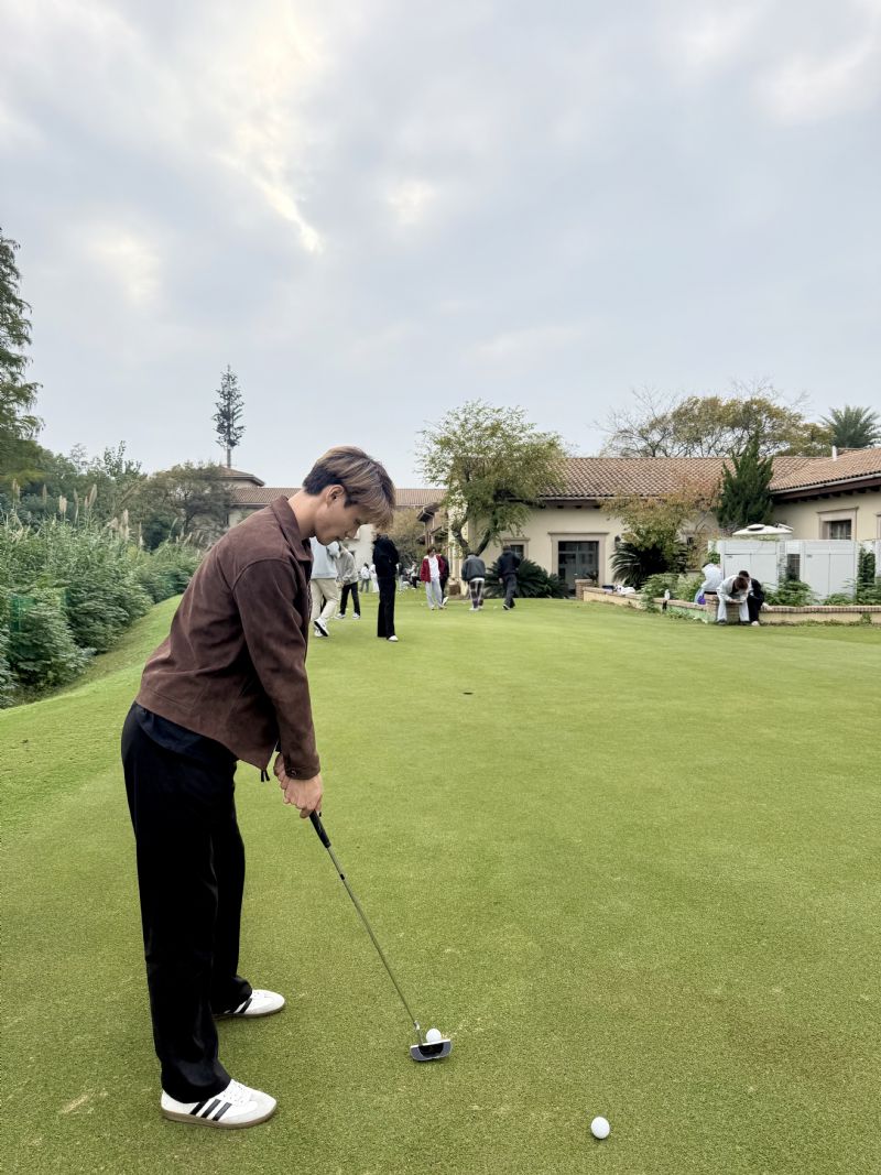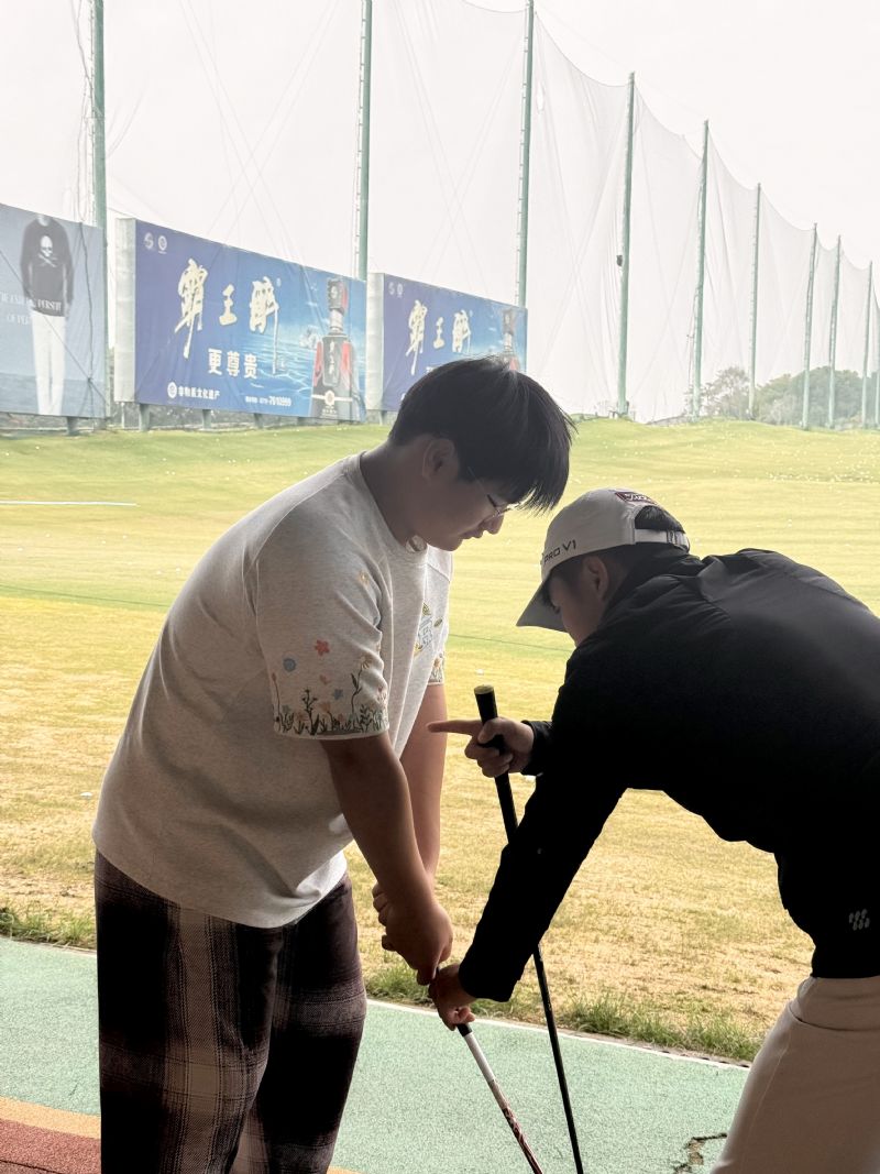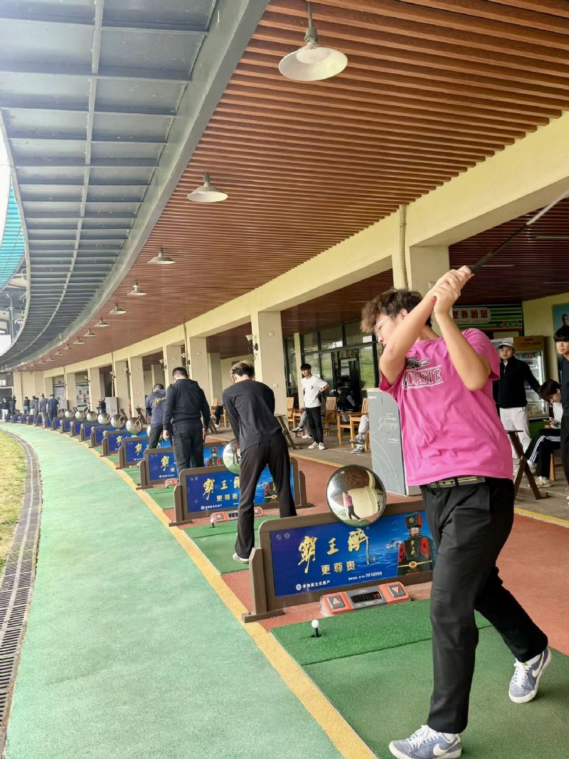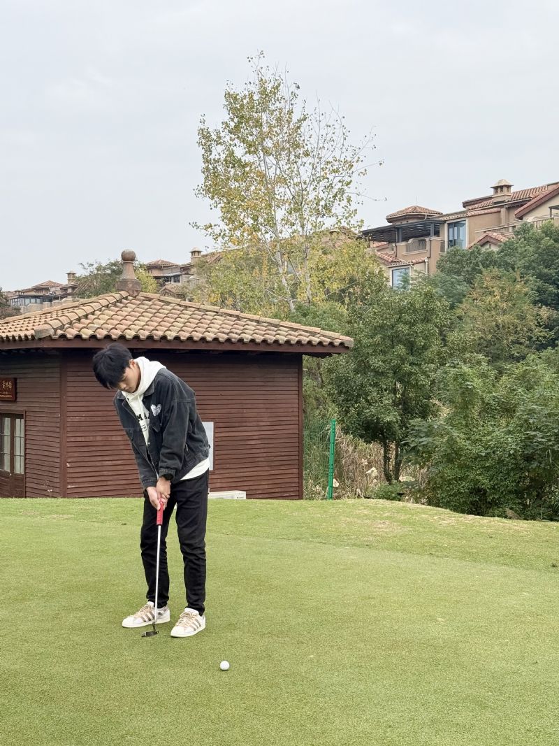 实践环节将同学们的学习热情推向高潮。在教练的细致指导下,同学们分组进行推杆与击球练习。“手腕放松,重心下沉,节奏要稳……”从握杆方式到站姿调整,从起杆到收杆,每一个动作细节都被教练详细拆解、认真讲解与重复示范。同学们的初次实战虽带青涩,但当小白球划过空中、稳稳落上果岭或成功推杆进洞,喜悦与成就感洋溢在每张年轻的脸庞上。