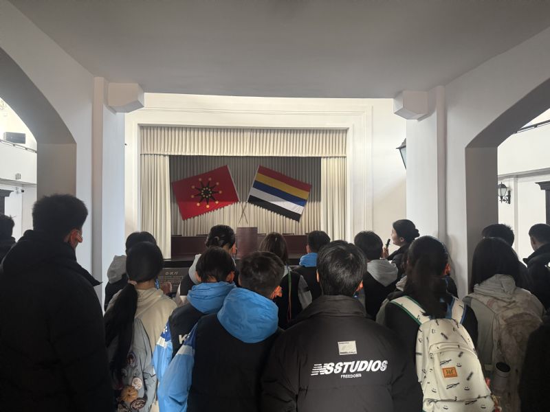 在纪念馆,全体师生在馆前广场列队合影,青砖红瓦的纪念馆与同学们的青春面庞相映,定格下铭记红色记忆的重要瞬间。活动以分组形式开展,三位专业讲解员带队,系统讲解武昌起义的历史背景、经过与伟大意义。同学们专注观摩馆内历史文物、珍贵照片史料,不时拍照记录、交流讨论,还在师生互动中自发将历史事件与爱国主义精神、青年责任相联结,深入思考“辛亥精神”的时代价值,展现出良好精神风貌与求知热情。