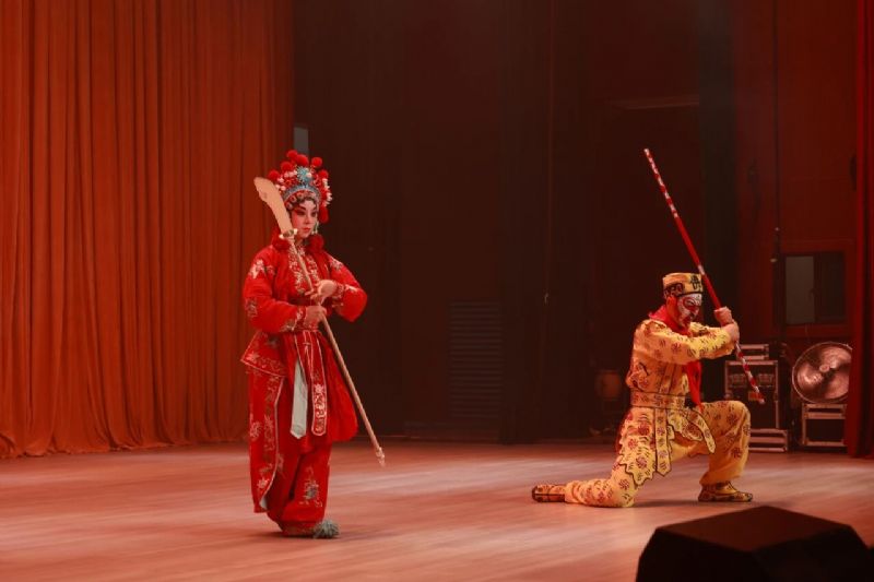 最让人热血沸腾的是《武打精粹》表演。湖北省戏曲艺术剧院的演员们,拳脚生风、身姿矫健,每一个动作都透着“不服输”的韧劲。“这就是我们体育人该有的样子!”同学们自发鼓掌,掌声里有敬佩,更有“向英雄看齐”的决心。