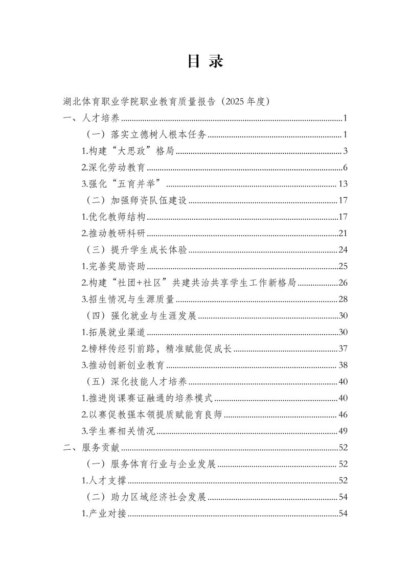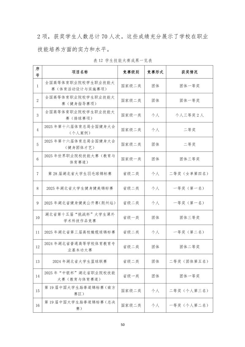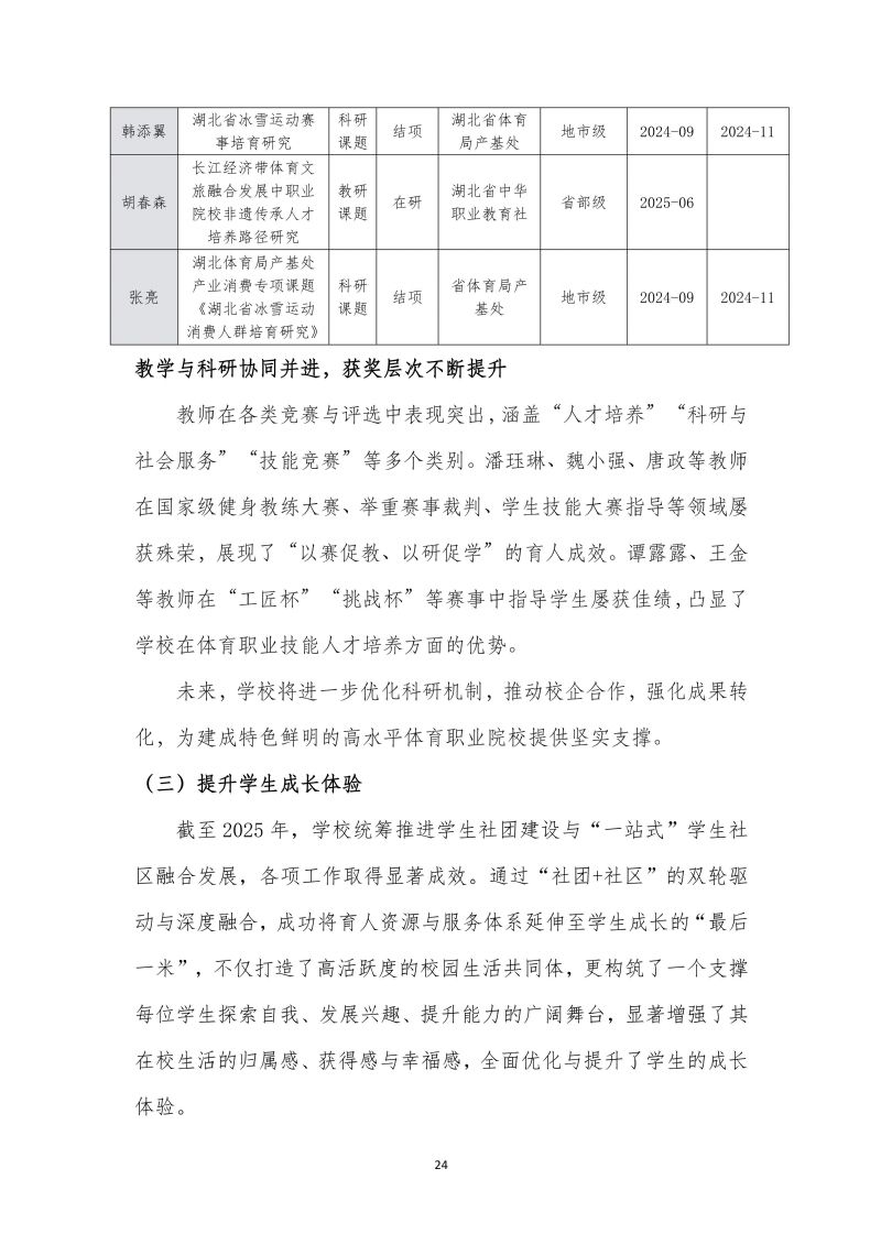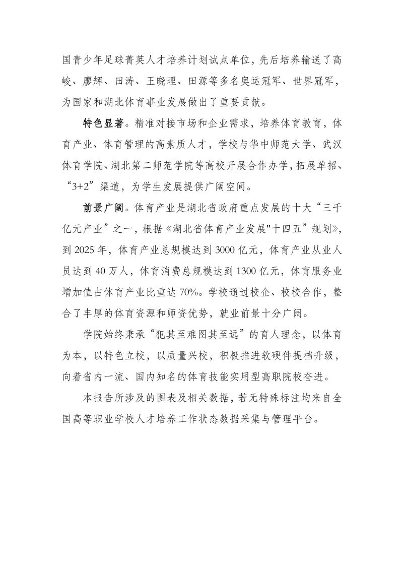 湖北体育职业学院职业教育质量报告(2025年)