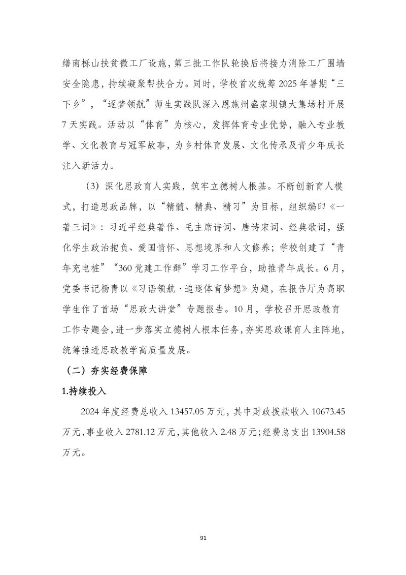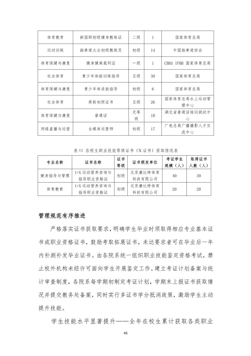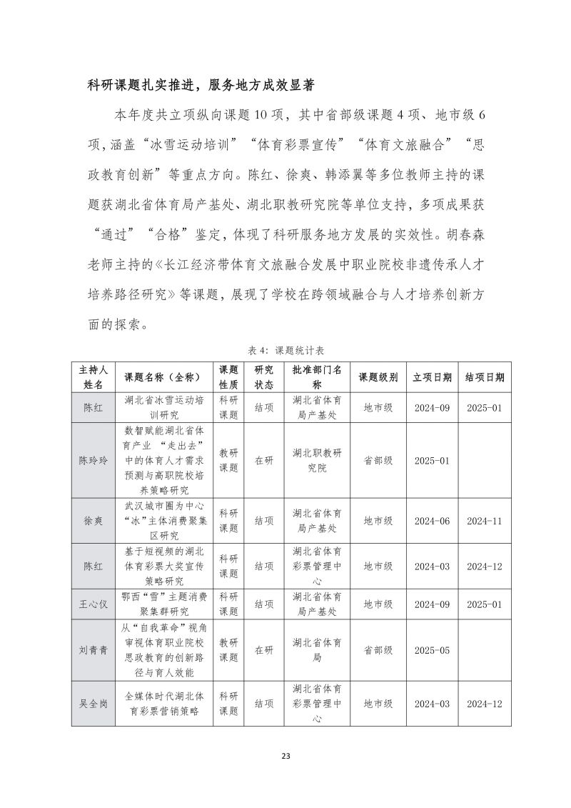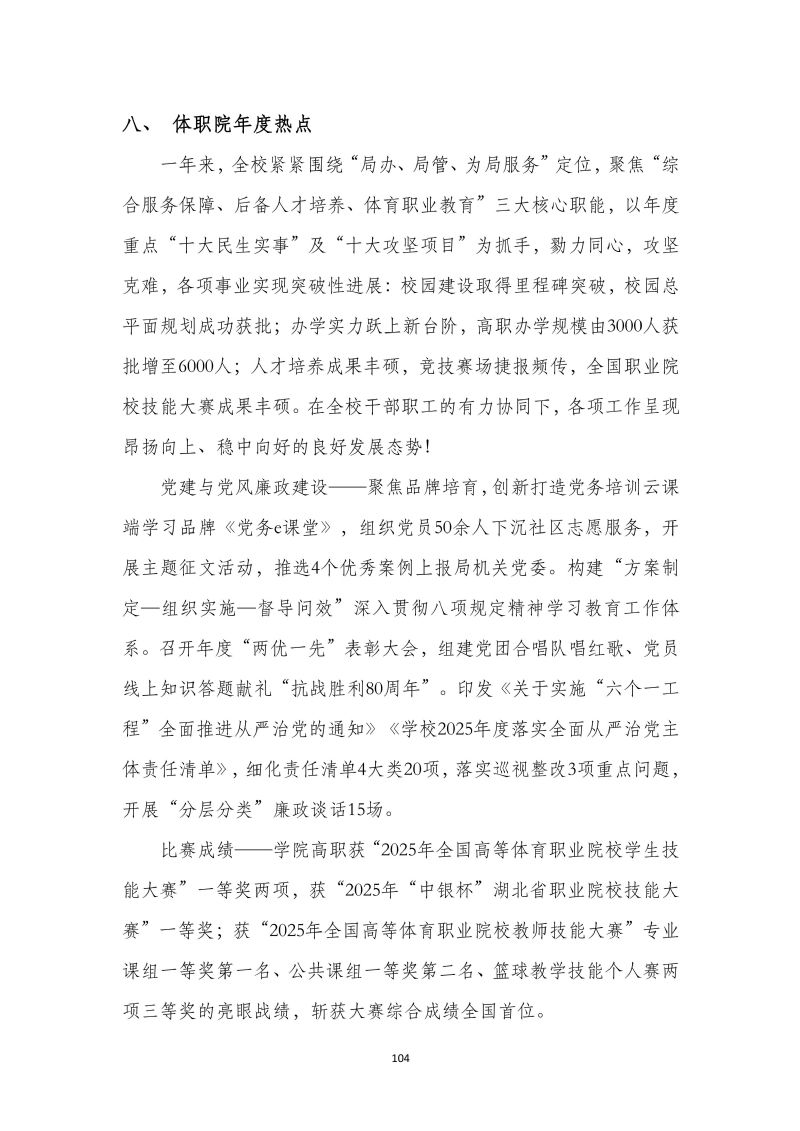 湖北体育职业学院职业教育质量报告(2025年)
