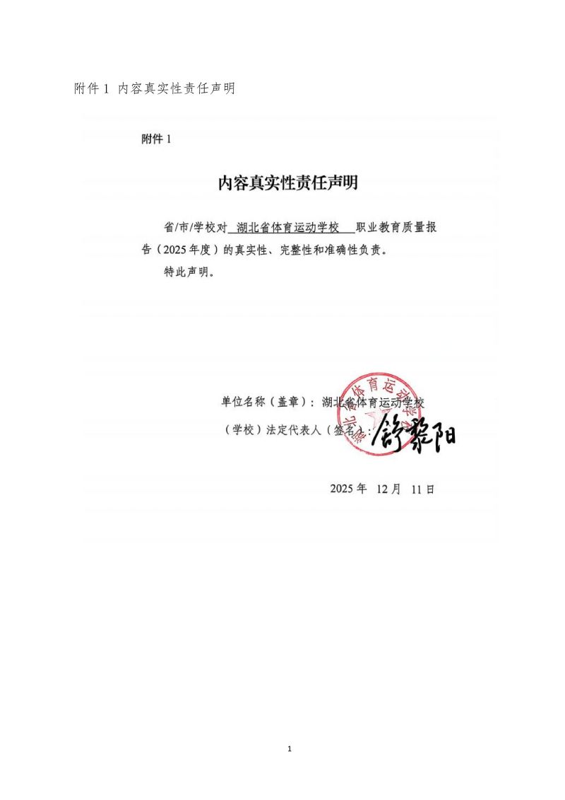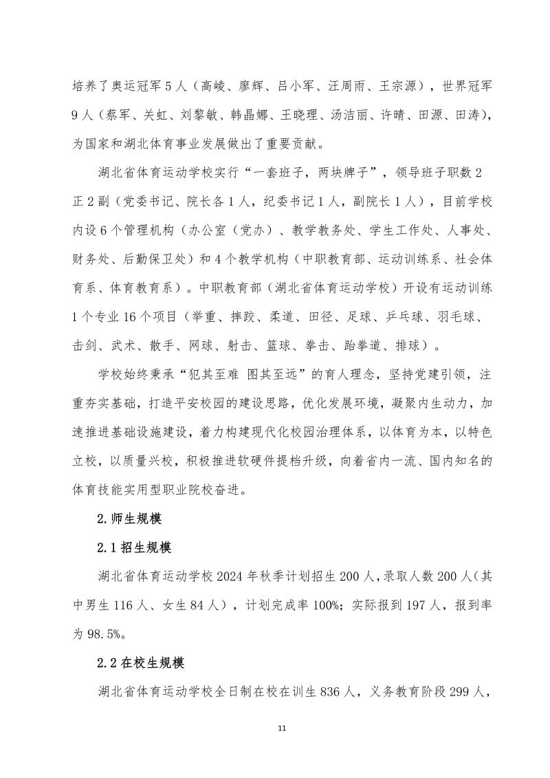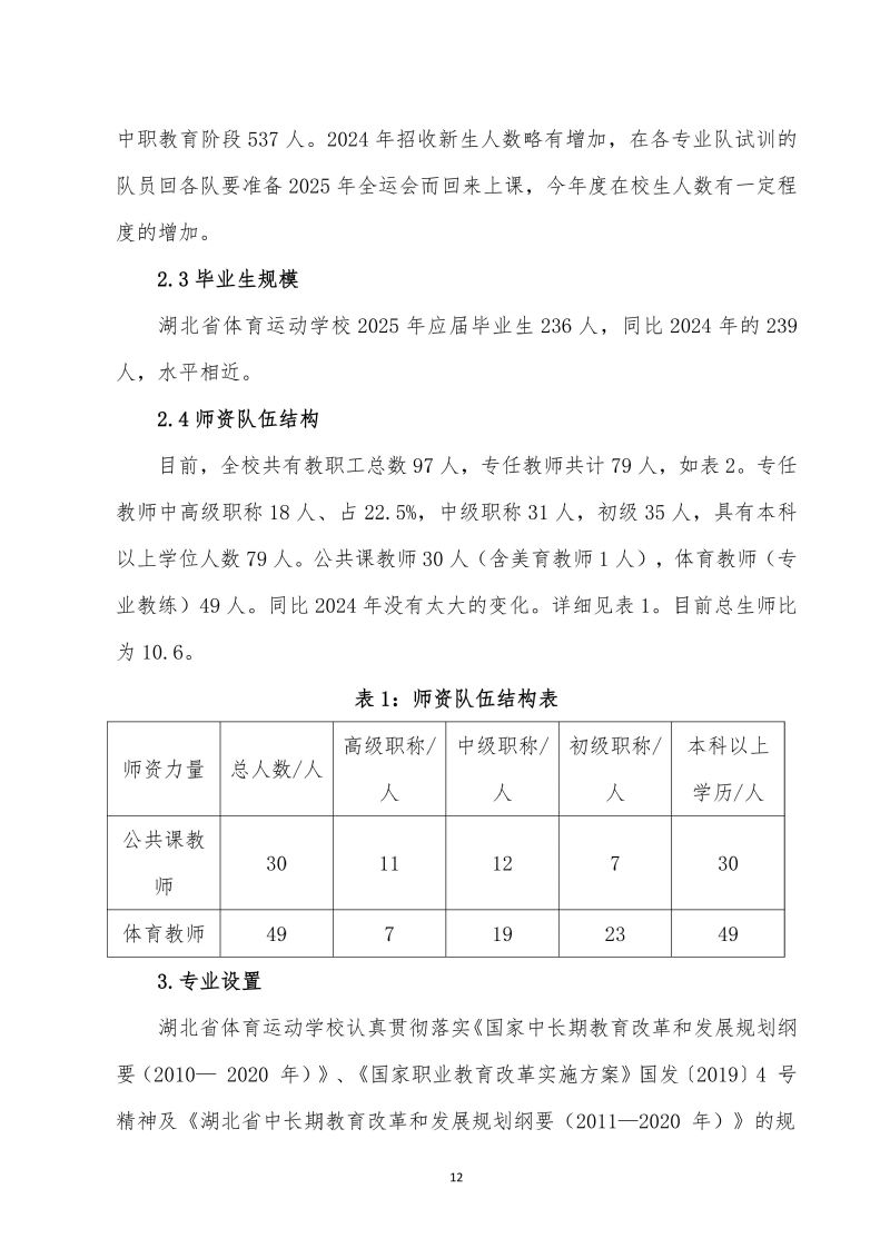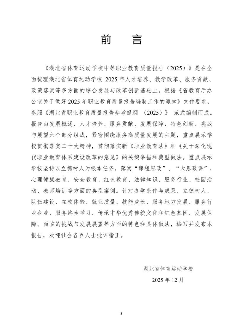 湖北省体育运动学校中等职业教育质量年报(2025年)