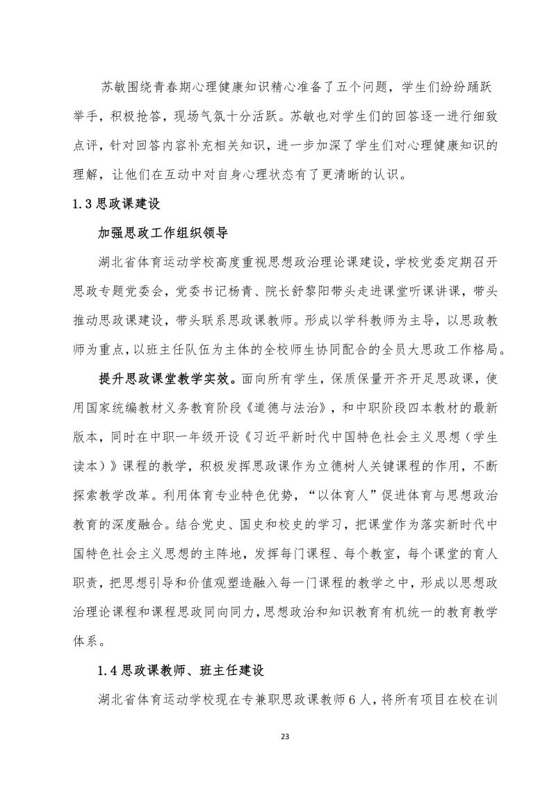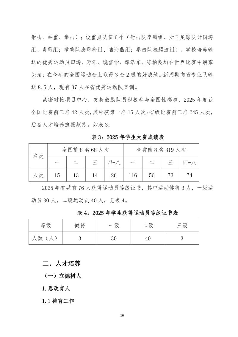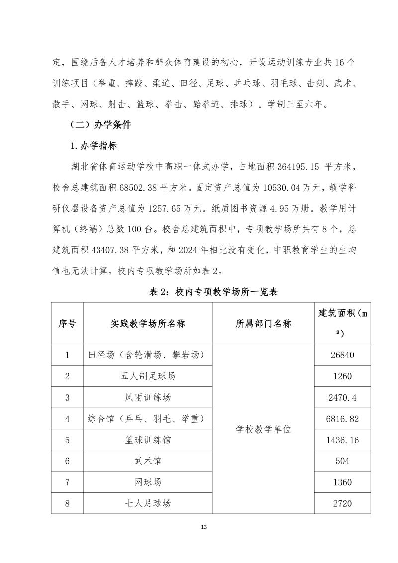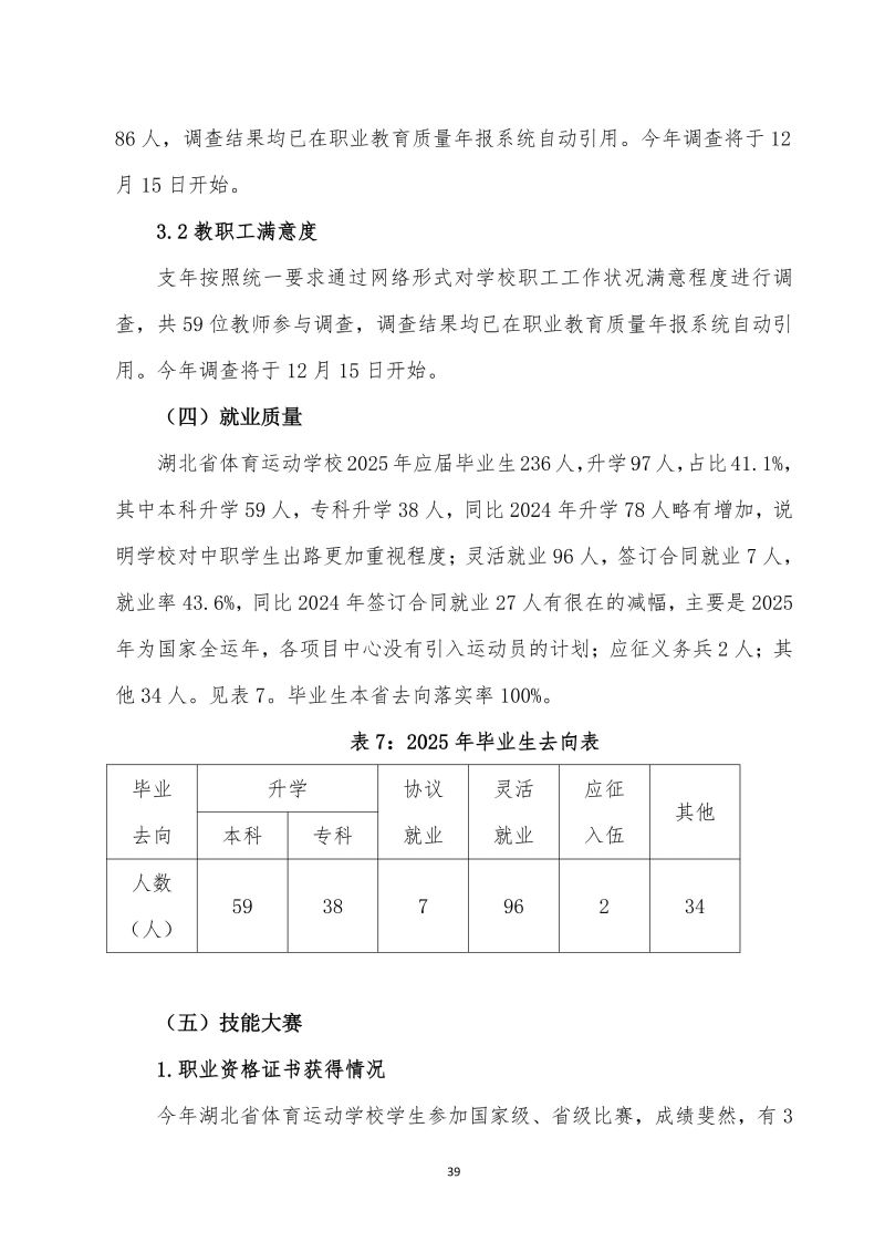 湖北省体育运动学校中等职业教育质量年报(2025年)