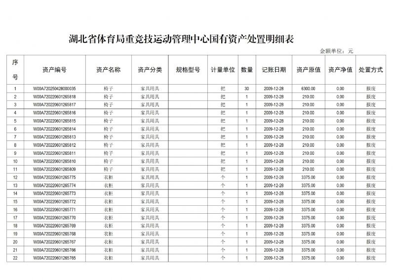 附件:湖北省体育局重竞技运动管理中心国有资产处置明细表