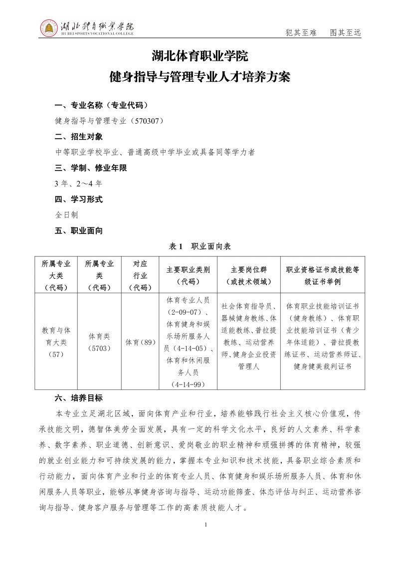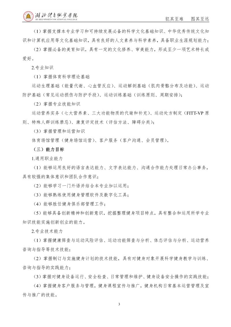 2025级人才培养方案 健身指导与管理专业(专业代码:570307)