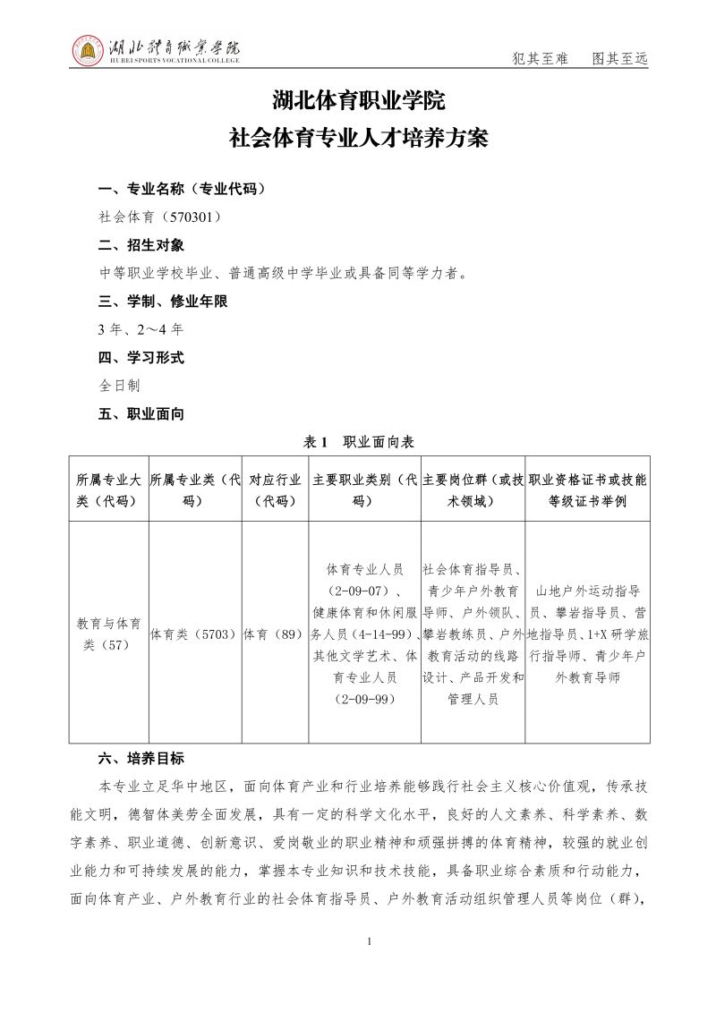 2025级人才培养方案 社会体育专业(专业代码:570301)