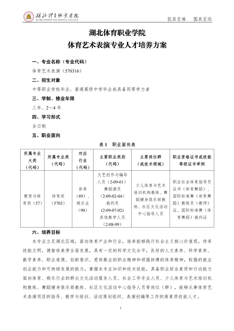 2025级人才培养方案 体育艺术表演专业(专业代码:570316)