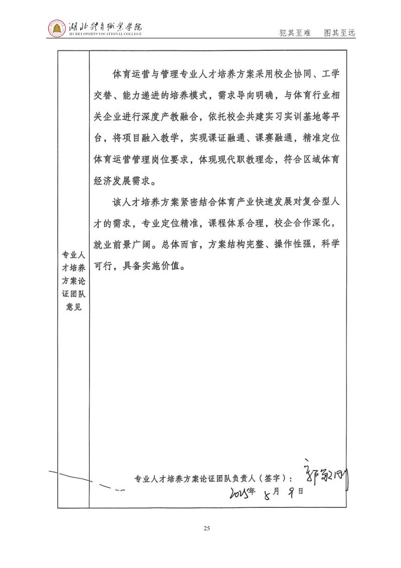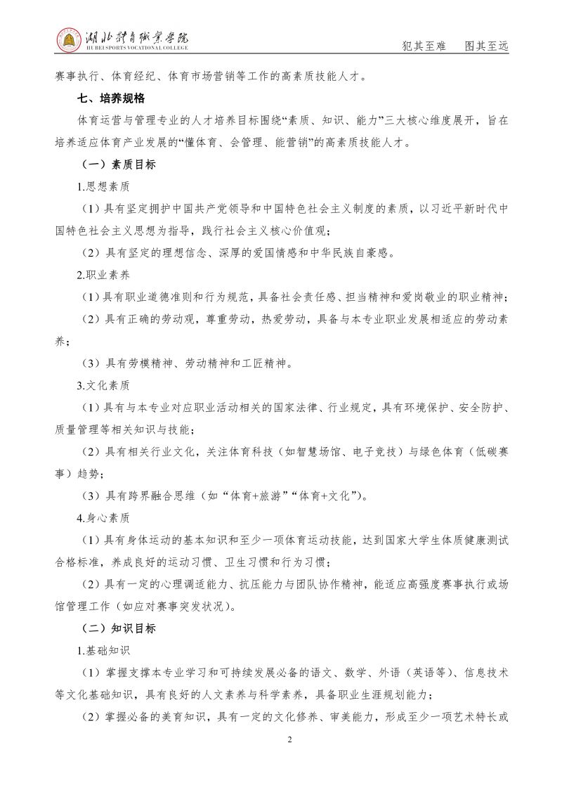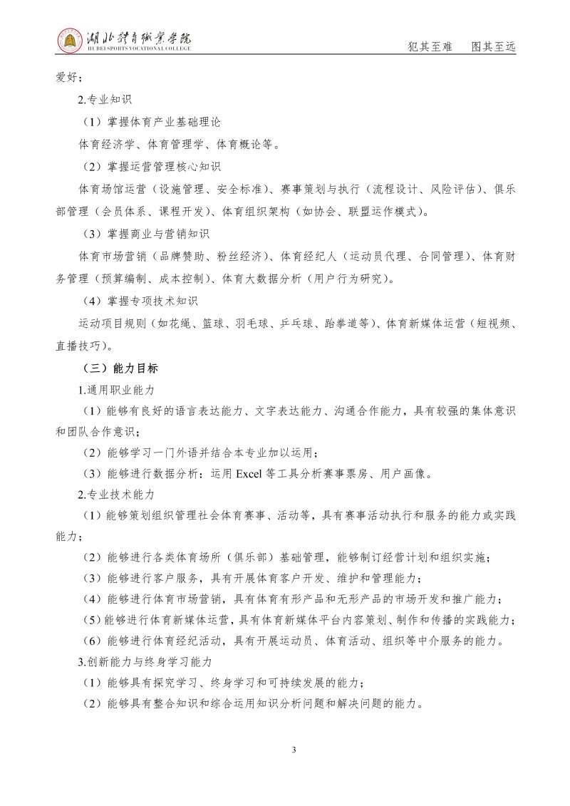 2025级人才培养方案 体育运营与管理专业(专业代码:570311)