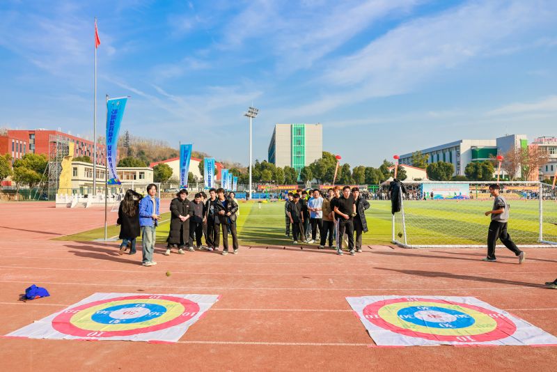 12月16日,2025年“体育嘉年华”活动在田径场正式开幕。活动创新性融合竞技与趣味两大板块,设置滚滚向前、真人打地鼠等6项竞技项目及旱地冰壶、高尔夫推球等4项趣味项目。竞技场上,各代表队默契配合、奋勇争先;接力赛中队员们极速冲刺、交接有序;拔河比赛的对决悬念迭起,绳索两端的队员们咬牙发力、众志成城;心心相印、八仙过海等项目则考验着团队的协作与默契。趣味区里,师生们自由打卡参与,沙包掷准的精准投掷、九宫足球的巧妙射门,让赛场充满欢声笑语,完成全部项目即可参与抽奖,充分展现了“快乐运动”的活动理念。