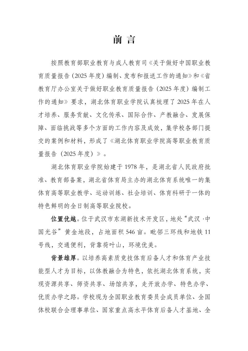 湖北省体育运动学校中等职业教育质量年报(2025年)